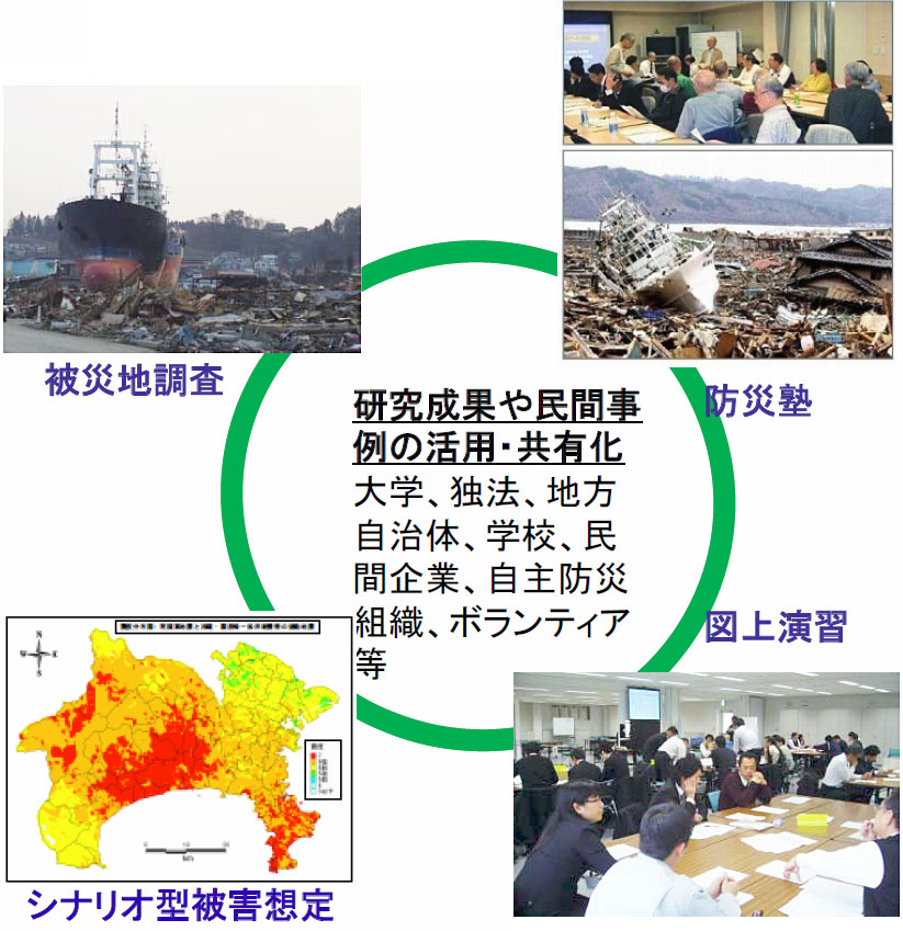 - 様々な防災・危機管理研究や防災・減災対策に関する研究及び最新の知見等の成果を収集