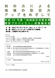 文部科学省では、平成 25 年度より「地域防災対策支援研究プロジェクト」を開始し、①全国の大学等における理学・工学・社会科学分野の防災研究の成果を一元的に提供するデータベースを構築するとともに、②地元の大学等が防災研究の成果の展開を図り、地域の防災・減災対策への研究成果の活用を促進しています。 今年度の成果報告会は第3回国連防災世界会議パブリック・フォーラムのイベントとして、本プロジェクトに取り組んでいる幾つかの機関の方々から今年度の取組状況や成果について報告いたします。さらに、その後のパネルディスカッションでは、地域の取組で共通して浮かび上がる課題や展望についての認識をご参加の皆さまといっしょに考え、議論いたします。地域で取組を実践されている方や関心をお持ちの方々に是非ご参加いただけますよう、よろしくお願いいたします。