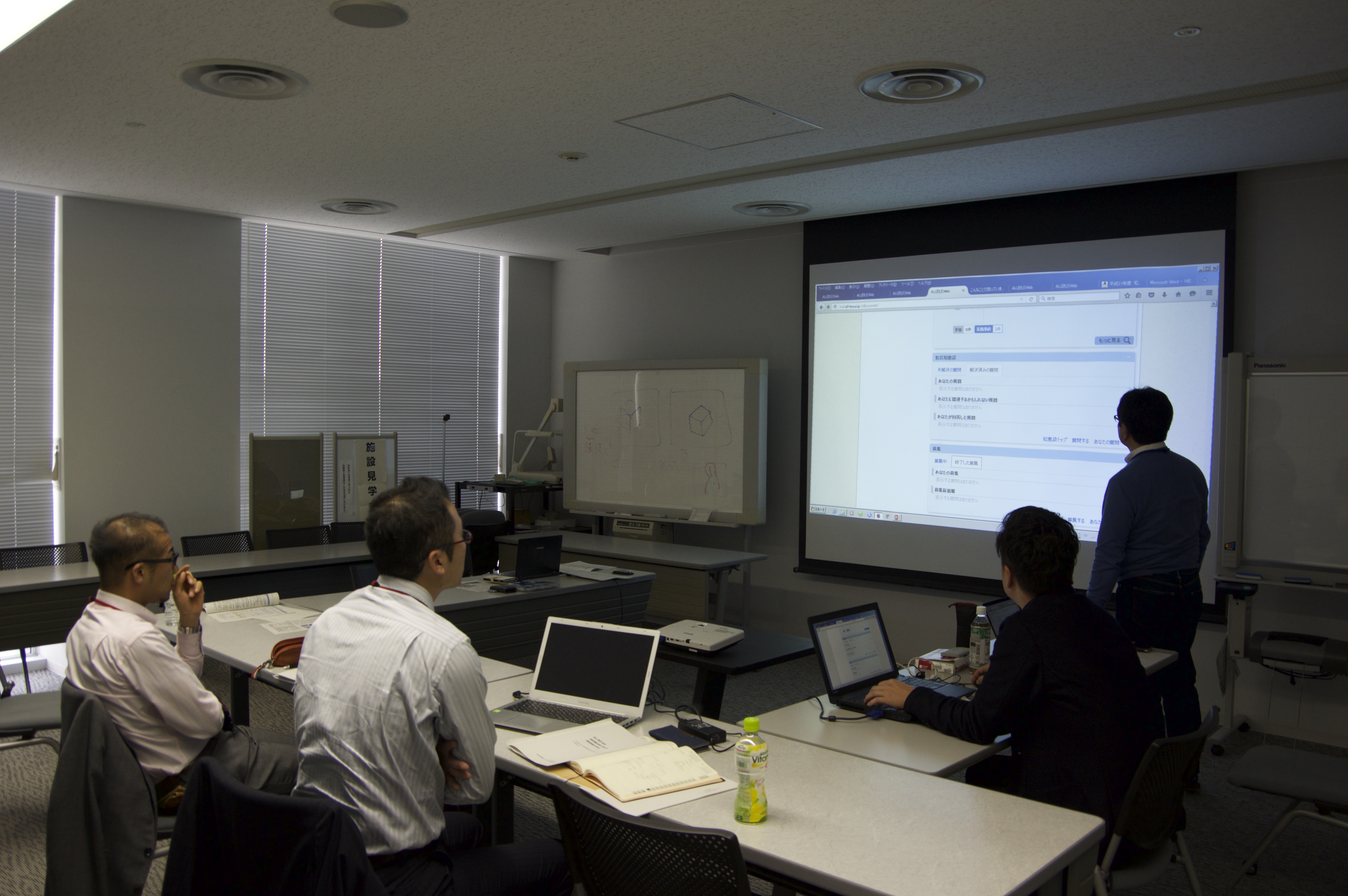 今回は、防災科学技術研究所で研修中の岡崎市市長公室防災危機管理課、豊田市社会部防災対策課、四万十町危機管理課の方々から、このWebサービスを実り多きものにするには「全国の市町村がアカウントをもち、防災についての取り組みを登録するシステムにする必要がある」ことや、<災害に関する地図>に「木造やコンクリートなどといった建物の情報も表示されるとよい」こと、また、「自然特性は、市町村で、より適切な情報にカスタマイズできるようにしてほしい」などの有益なご意見をいただきました。