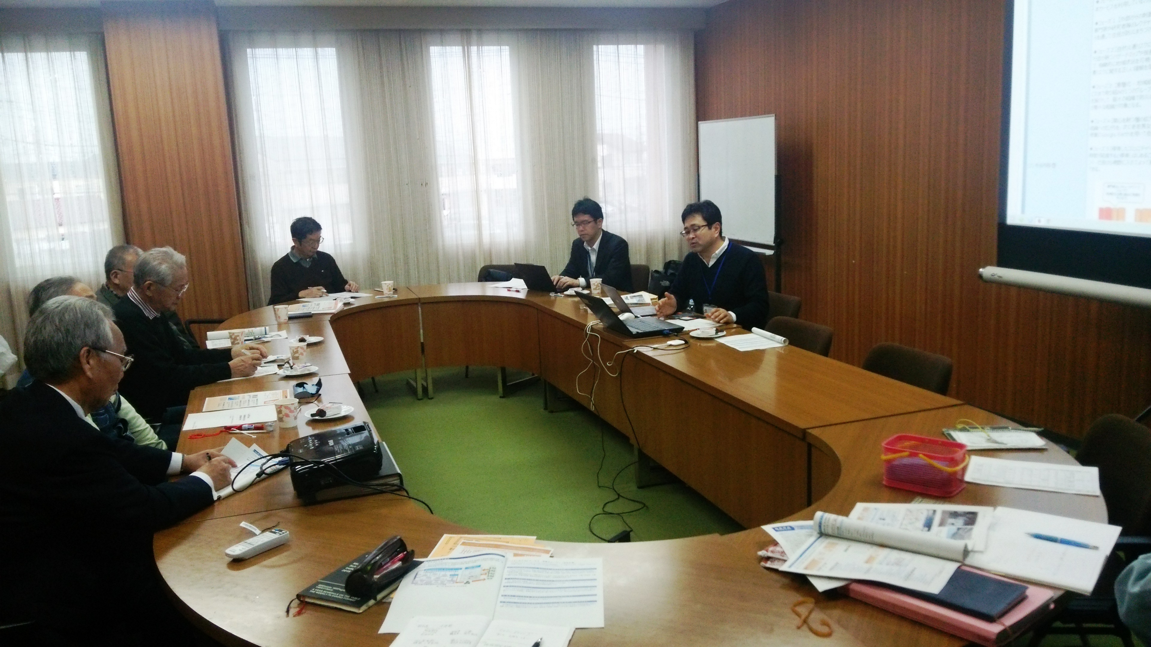 今回は、武里地区 の4つの自治会長と公民館の社会教育主事の方を対象に行いました。この地域の防災の取り組みは、「最初は消防署に協力してもらったので、消火器と救急の取り組みを行っていた。その後、ステップアップして、地域の防災全般について取り組みたいという要望を公民館であげたところ、社会教育主事が島根県松江市が良い取り組みをしていると聞いて、現地に行って、防災手法をヒアリングし、地域で展開していった。」このような経緯で武里地区の防災の取り組みが展開されたので、防災対策手法がWebにまとめられ、情報が得られるのはとてもよいと思うなどのご意見をいただきました。